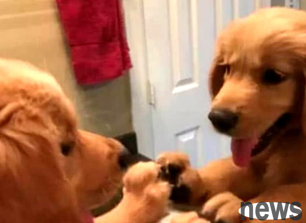 The female netizen went to the bathroom door to quietly watch what the little golden retriever was doing. When she saw the little golden retriever's behavior, everyone was as happy as a fat man of 200 pounds. But the little golden retriever stood up, put his two front paws on the mirror, and stared at himself.