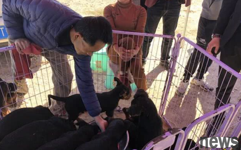 The vendor in the picture is setting up a stall in the dog market to sell a batch of Laizhou red dogs he brought. The Laizhou Red Dog is a northern native dog introduced from the Northeast. Because the hair all over its body is slightly red, it is called the Laizhou Red Dog. According to traders, the Laizhou Red Dog is also a very popular guard dog in the north for guarding homes and nursing homes. These Laizhou red dogs, which are not commonly seen in ordinary times, also attracted a large number of buyers to watch after the stalls were opened, because people rarely see such dogs and find them relatively novel.