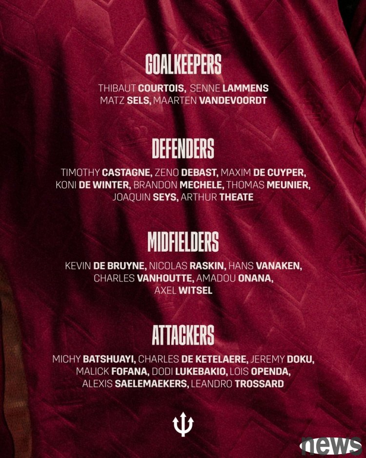 Defenders: Castagne (Fulham), De Baster (Porcelain), De Qupe (Brighton), De Winter (AC Milan), Mecher (Bruges), Munier (Lier), Sis (Bruges), Tate (Frankfurt)