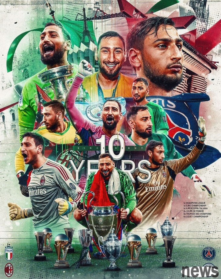 10 years ago today, goalkeeper Donnarumma made his career debut. The player also posted a poster on his personal social media to commemorate this special moment. The text read: "I am very proud that I made my career debut 10 years ago."