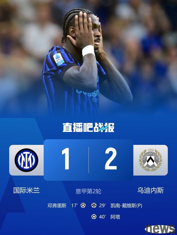 The first loss in the league! Inter Milan lost 2 goals in a row and reversed by Udinese 1-2. Dumfries scored + handball giveaway