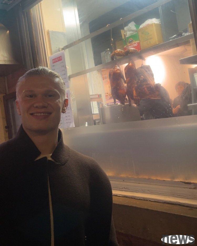 Haaland's social media posted a photo of walking on the street + eating barbecue, with the text: "The second day of the match day."