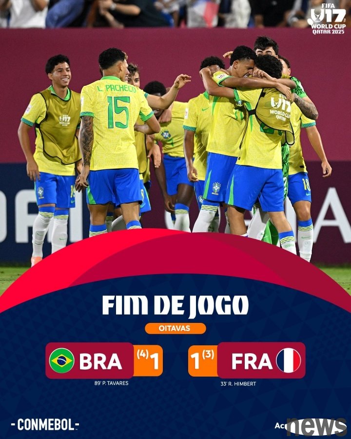 U17 World Cup 1/8 finals, Brazil and France compete for a top 8 spot. In the end, Brazil survived through a penalty shootout.